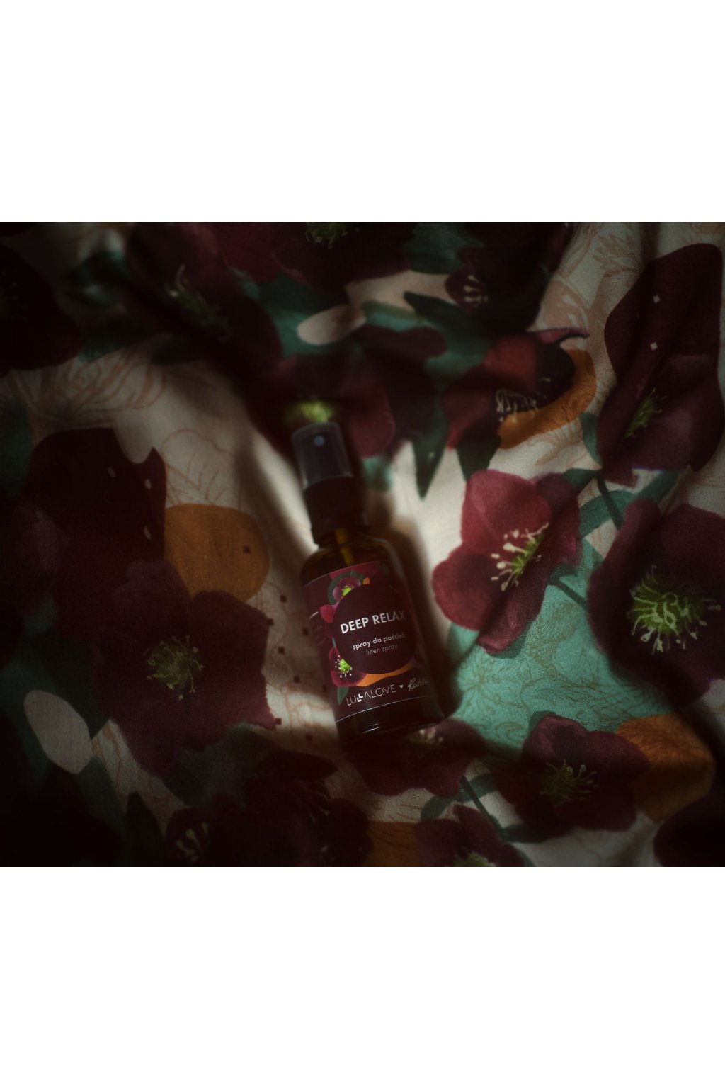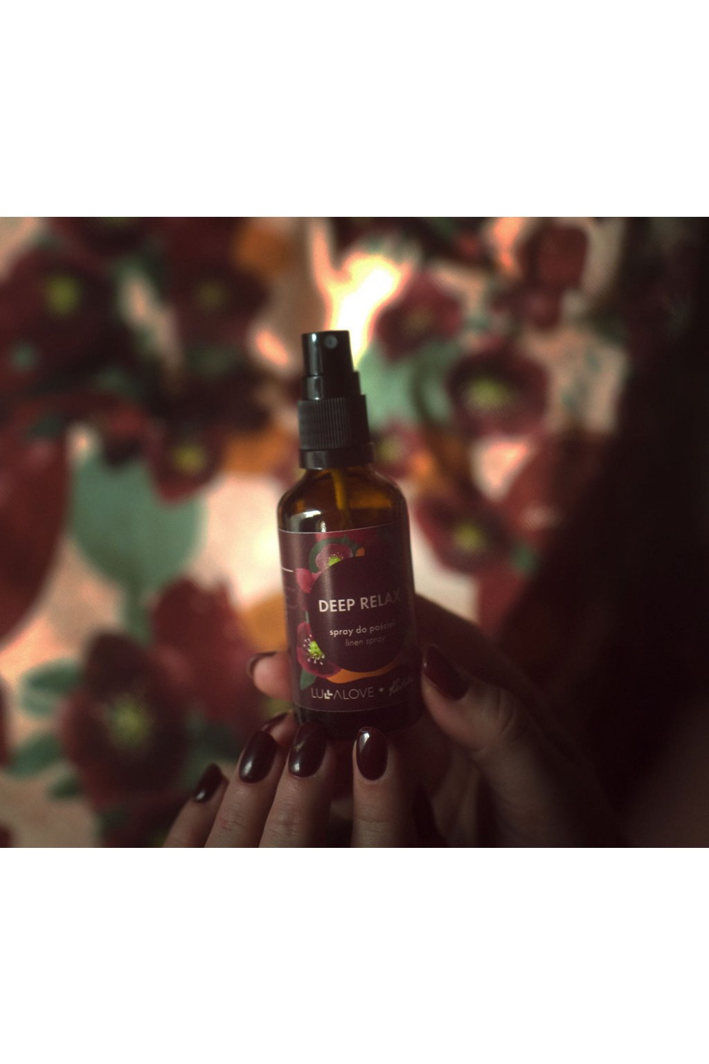 Vysoce koncentrovaný luxusní sprej do ložního prádla a pokojů založený na aromaterapeutických vlastnostech přírodních esenciálních olejů. Aromaterapie je obor nekonvenční medicíny, který využívá pozitivních účinků éterických olejů. Jeho použití bylo známé již ve starověku. Sprej Deep relax usnadňuje uklidnění v souladu s přirozeným rytmem našeho těla.