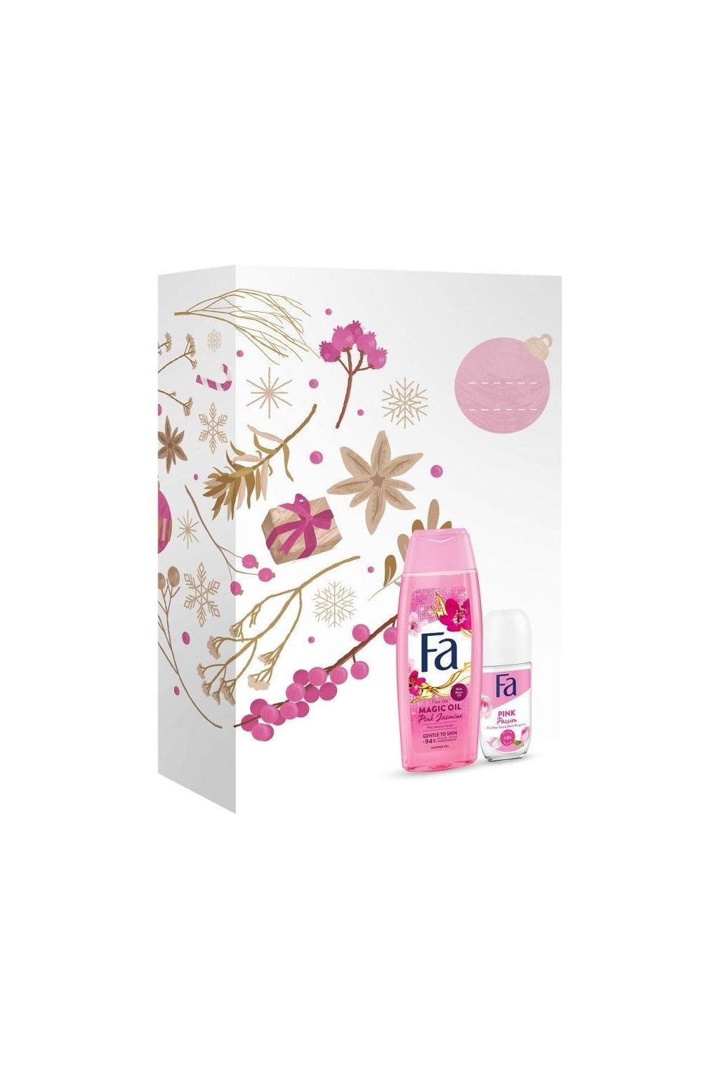 Dárková sada Fa představuje skvělou kombinaci dvou pečujících dárků. Sadu tvoří sprchový gel a antiperspirant značky Fa. Tato sada okouzlí vás nebo někoho, koho milujete, relaxační vůní růžového jasmínu, uzavřenou ve sprchovém gelu a kuličkovém antiperspirantu, zabalenou v krásné, dekorativní krabici.