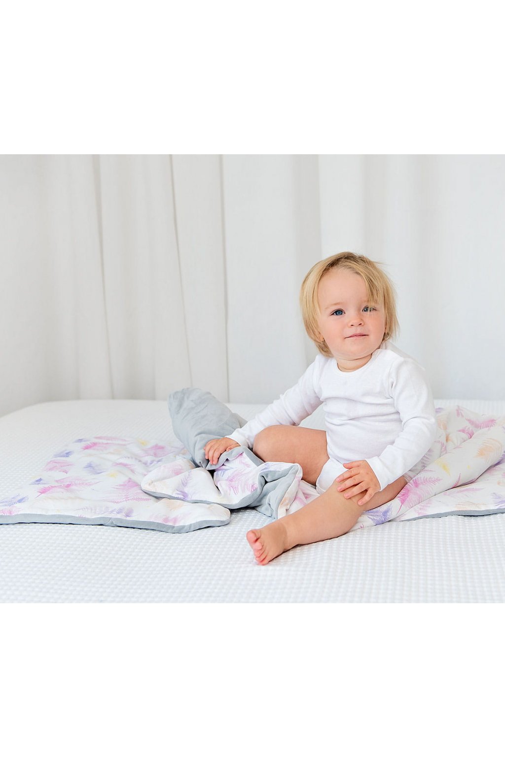 Díky speciálnímu šití a plnění, může být pečlivě zabalena kolem dítěte při procházce nebo cestování. Snadno se dá vyčistit a rychle usušit. Přikrývku lze použít také v dětské postýlce. Rozměry a hmotnost jsou bezpečné i pro malé děti. Do sady můžete zakoupit polštář s plochým rozměrem 50x40 cm.