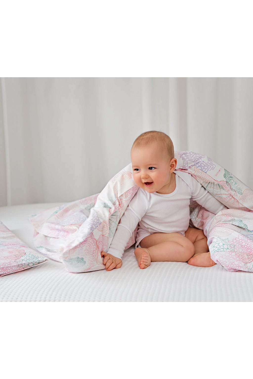 Jedinečné povlečení s krásným boho růžovým vzorem. Vyrobeno ze 100% bavlny nejvyšší kvality s certifikátem Oeko-Tex standard 100, třída I, která je bezpečná i pro miminka. Povlečení nemá zip ani suchý zip, takže je pro děti naprosto bezpečné.