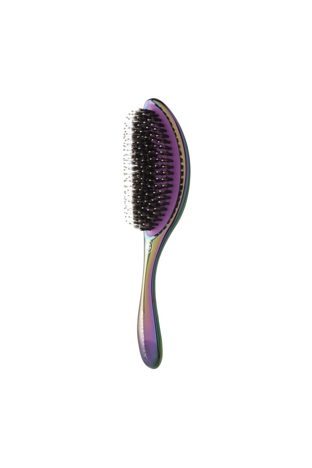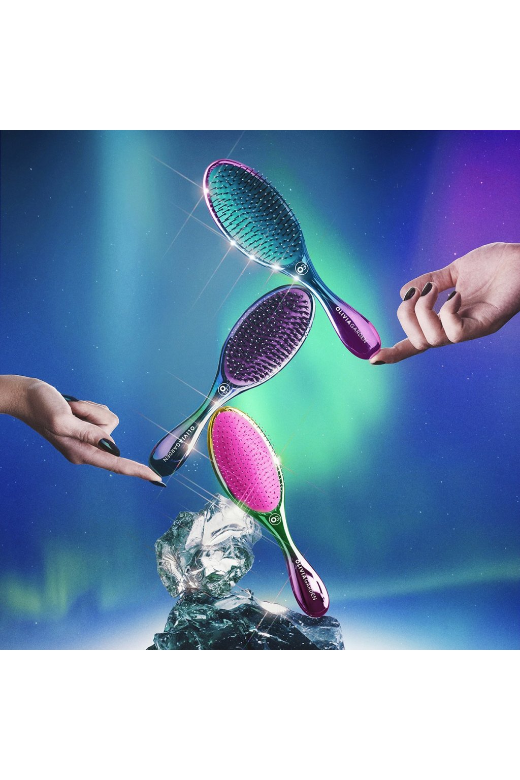 Kolekce barevných štětců Aurora vás zve na cestu světelnými inspiracemi polární záře. Upoutá kovovým povrchem procházejících barev. Aurora Violet byla vytvořena s ohledem na vlasový styling. Díky svému ergonomickému tvaru se ideálně hodí k pokožce hlavy a stará se o její zdraví a kondici. Ideální pro styling a vyhlazení pramenů. Kombinace přírodních kančích štětin a nylonu eliminuje krepatění a statickou elektřinu ve vlasech. Dokonale rozčesává všechny typy vlasů, dodává jim lesk a zanechává je plné lesku. Odnímatelný polštář usnadňuje čištění a udržování hygieny.