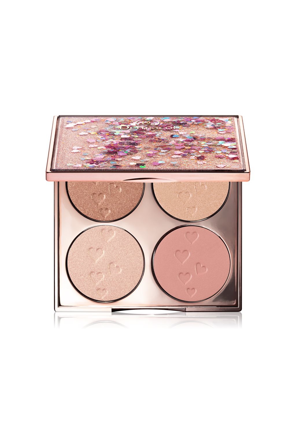 Tvářenka a bronzer pro zdravý vzhled a konturování. Dva rozjasňovače, které lze použít jak za sucha pro jemný elegantní třpyt, tak s lehce namočeným štětcem pro glamour lesk. Zatímco v prvním případě dosáhnete jemný elegantní třpytivý efekt, při použití navlhčeného štětce vyčarujete výrazný glamour lesk. Luxusní balení s pohyblivými flitry a srdíčky a zrcátkem uvnitř předurčují tuto paletku i na dárek, který rozhodnete nebudete schovávat v kabelce. Voní po broskvích a arganových květech.