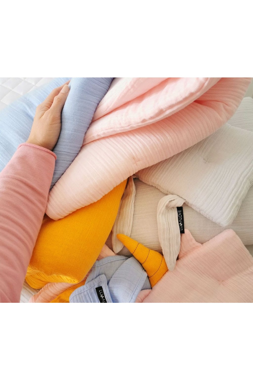 Do kompletu z této kolekce si můžete vybrat plenky, polštáře nebo teplejší přikrývky. Kolekce perfektně sedí s přikrývkami a tištěnými vzory. Suroviny, ze kterých byl produkt vyroben, mají nejvyšší certifikát Oeko-Tex standard 100, což zaručuje bezpečné používání produktu u kojenců.