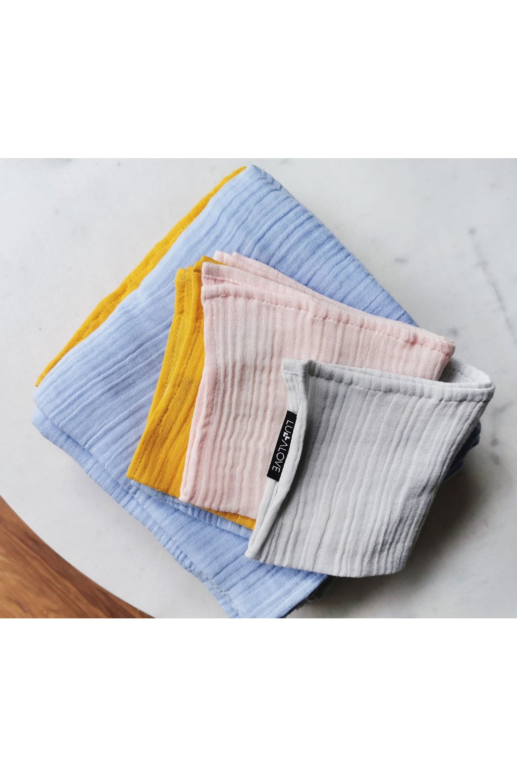 Do kompletu z této kolekce si můžete vybrat plenky, polštáře nebo teplejší přikrývky. Kolekce perfektně sedí s přikrývkami a tištěnými vzory. Suroviny, ze kterých byl produkt vyroben, mají nejvyšší certifikát Oeko-Tex standard 100, což zaručuje bezpečné používání produktu u kojenců.
