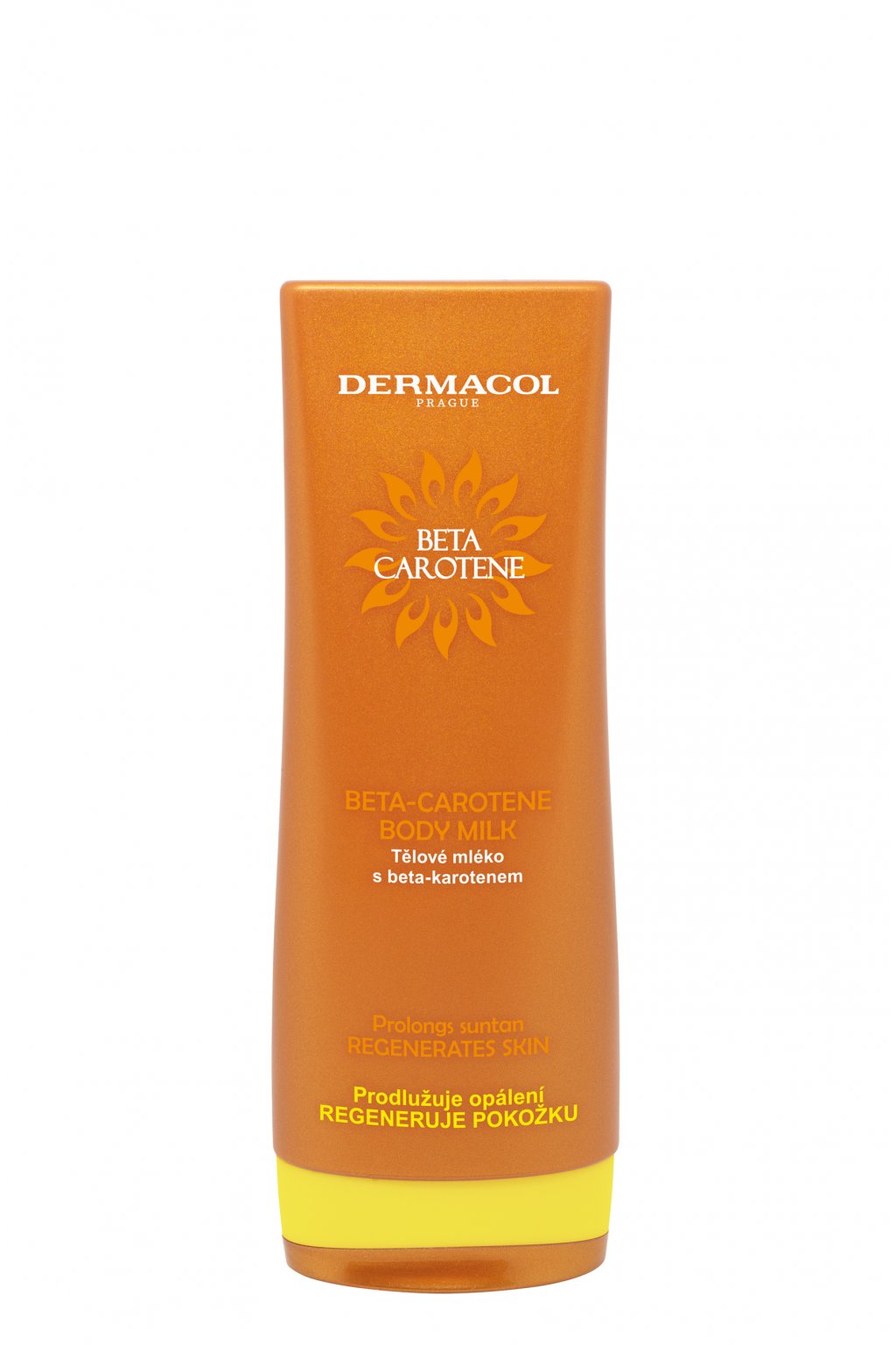 Tělové mléko po opalování s beta-karotenem pro prodloužení opálení. Lehce roztíratelné a vstřebatelné mléko s D-panthenolem a vitaminem E přispívá k regeneraci pokožky a zklidňuje případné podráždění. Beta-karoten podporuje a prodlužuje opálení pokožky. Mléko zároveň zpomaluje proces jejího olupování. Je vhodné pro ošetření pokožky po celý rok. Přípravek Dermacol Beta Caroten poskytne pokožce namáhané sluncem potřebnou péči a zároveň prodlouží výdrž získaného opálení.