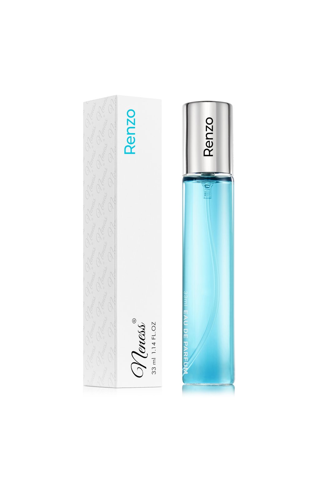Citrusově dřevitá vůně uzavřená v klasickém flakónu 33 ml. Vůni si oblíbí sebevědomý a tajemný muž. Úvod parfému Renzo vás překvapí osvěžujícím výbuchem citronové kůry, bergamotu a máty. Svěžest tohoto motivu je ještě zesílena a zároveň kontrastuje s hořkými tóny pelyňku, který dodává kompozici charismatický nádech. Pronikavou levanduli v srdci vůně netradičně doplňují zelené tóny, šťavnatý ananas a geránium. V základu se snoubí ambrové dřevo s cedrem, fazolemi tonka a santalovým dřevem z Nové Kaledonie. Návykovost vůně pak ještě umocňuje akord Iso E Super.