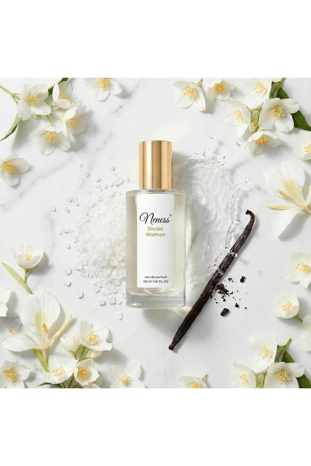 Ovocná chypre vůně uzavřená v klasickém flakónu 50 ml. Neness Divine Woman přináší do tvého světa vlny harmonie a elegance. Otevírá se vůní pačuli, zeleného jablka a osvěžujícího citronu, které tě vtáhnou do svěžesti rozkvétající záhrady. Růžový pepř a fialka dodávají této směsi jiskru a špetku pikantnosti. Při průchodu do srdce vůně objevíš hřejivou kombinaci santalového dřeva, smyslné růže, jemného sturačiho nádechu a delikátního pižma. Závěrečný akord tvoří sladké tóny broskví, šťavnatého černého rybízu a slunečného šeříku, které se mísí s omamným ylang-ylang a hlubokou notou ambry, aby vytvořily závěrečný šlechtěný a zároveň přitažlivý dojem. Tento parfém je oslavou přirozené elegance a sofistikovanosti.