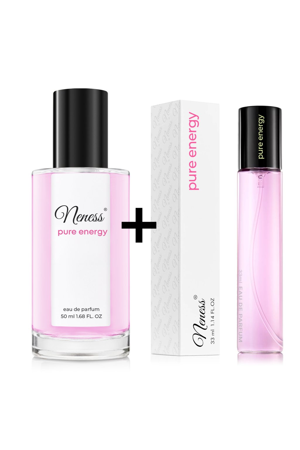 Neness Pure Energy je vůně pro ženy, které chtějí zazářit a cítit se sebevědomě od rána do večera. Je hravá, návyková a přitom smyslně elegantní – ideální pro chvíle, kdy chcete být nepřehlédnutelná. V úvodu vás okouzlí exotický ylang-ylang zahalený do jemné sladkosti vanilky, která vůni dodává hebkost a ženskost. V srdci se rozvíjí originální tón pop-cornu, jenž přináší nečekaný, lehce gurmánský akcent a dělá z této kompozice skutečně jedinečný zážitek. Základ tvoří hřejivé santalové dřevo, smyslná ambrette (ibiškovec pižmový) a bílé pižmo, které zanechávají na pokožce dlouhotrvající, svůdnou stopu. Pure Energy je perfektní volbou pro ženy, které milují kombinaci sladkosti, jemné exotiky a moderní smyslnosti. Stačí pár kapek a vaše energie bude cítit na každém kroku.