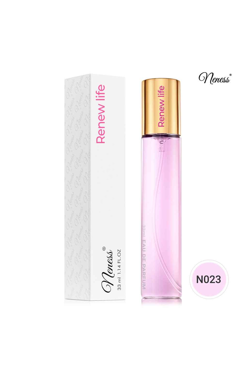 Květinová vůně uzavřená v klasickém flakónu 33 ml. Klasická, nadčasová, nevtíravá a nezapomenutelná vůně, která připomíná kytici jarních květů se hodí ke každodennímu nošení pro moderní a sebejistou ženu. Hlavním akordem parfémované vody je vzácný kaktusový květ, který – stejně jako žena samotná – oplývá neobyčejnou krásou a elegancí. Jeho spojení se srdcem, ve kterém se snoubí akordy růže, frézie a růžového jasmínu, vytváří ryze elegantní kombinaci. Základem vůně Neness Renew Life je pak cedrové dřevo a další dřeviny, které celou vonnou kompozici smyslně podkreslují a vydrží na kůži po dlouhé hodiny.