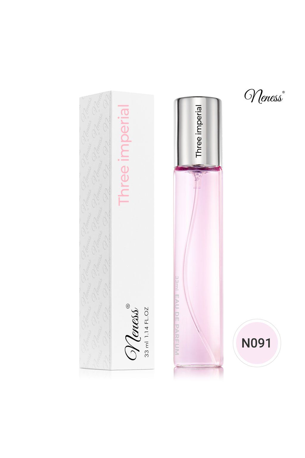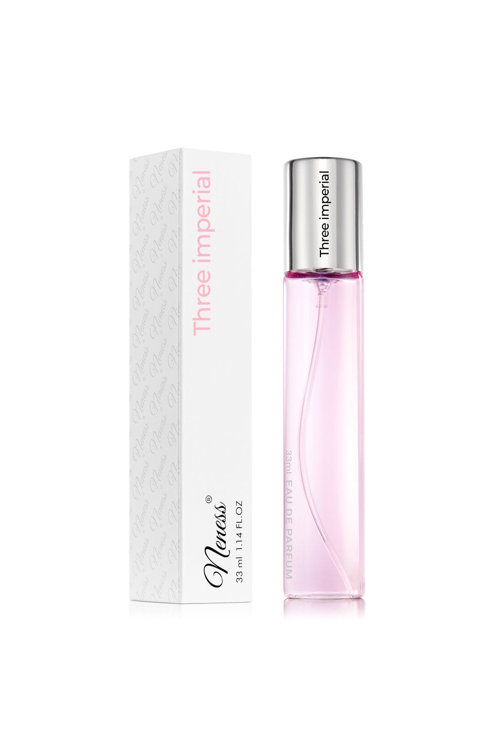 Květinová vůně uzavřená v klasickém flakónu 33 ml. Smělá, elegantní a nezapomenutelná. Neness Three Imperial je vůně pro ženy, které se nebojí vyniknout. Svěží a energická kompozice kombinuje exotické ovoce, květiny a smyslné dřevité tóny, čímž vytváří jedinečný zážitek, který vás bude provázet po celý den. V úvodu vás překvapí jiskřivý růžový pepř v kombinaci s exotickým kiwi a osvěžující rebarborou. V srdci vůně se rozvíjí něžné květinové tóny jasmínu a bramboříku, které doplňuje šťavnatý meloun. Hřejivý základ tvoří smyslné pižmo, krémové santalové dřevo a vzácné citrónové dřevo, které dodávají vůni hloubku a sofistikovanost.