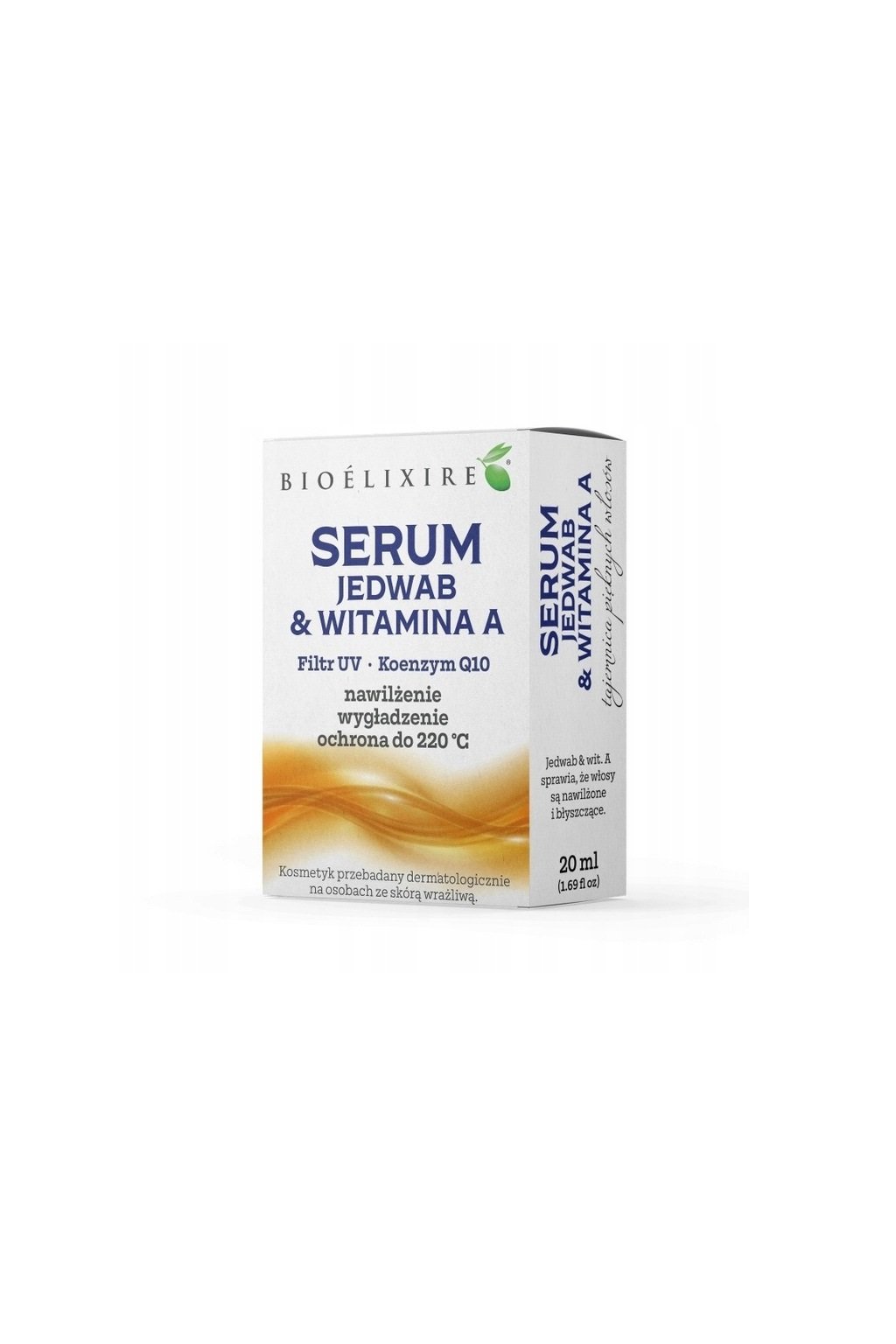 Silikonové sérum na vlasy s hedvábím s vitamínem A + Q10 od značky Bioelixire je kosmetika, která účinně chrání prameny vlasů před působením vnějších vlivů a zároveň je hloubkově vyživuje. Silikony vytvářejí na povrchu pramenů ochrannou vrstvu, chrání je před ztrátou vlhkosti, zajišťují ideální úroveň hydratace a zabraňují pronikání škodlivých látek a vzniku poškození do jejich vnitřku. Bioelixire Hedvábí + vitamín A, který obsahuje také koenzym Q10 a účinný UV filtr chránící prameny před slunečním zářením, intenzivně vyživuje, posiluje, leští a vyhlazuje vlasy.