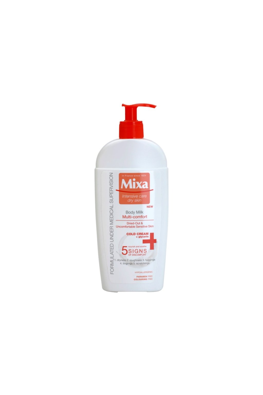 Posláním značky Mixa je dopřát vaší pleti tu nejlepší péči beze strachu z podráždění nebo alergické reakce. Pečující přípravky MIXA byly vyvinuty pod lékařským dohledem tak, aby splňovaly i ty nejpřísnější požadavky pro složení výrobků určených pro citlivou pleť. Hypoalergenní složení našich produktů bylo testováno dermatology i na té nejcitlivější pokožce. Navíc produkty MIXA byly zbaveny potenciálně dráždivých složek, jako jsou parabeny, alkohol nebo barviva. Proto se můžete na MIXU vždy maximálně spolehnout.