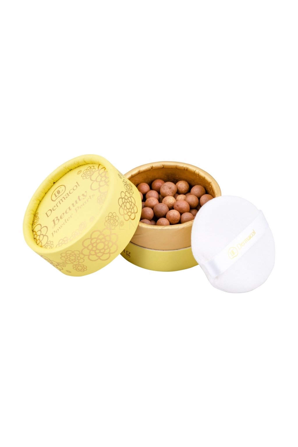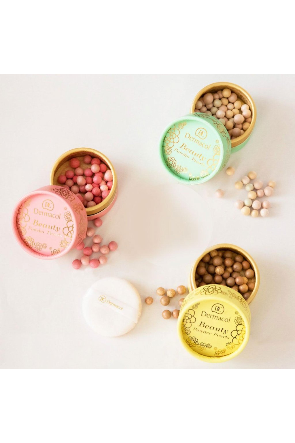 Výsledek: Různobarevné pudrové perly pleť projasní, opticky zdokonalí a dotónují.