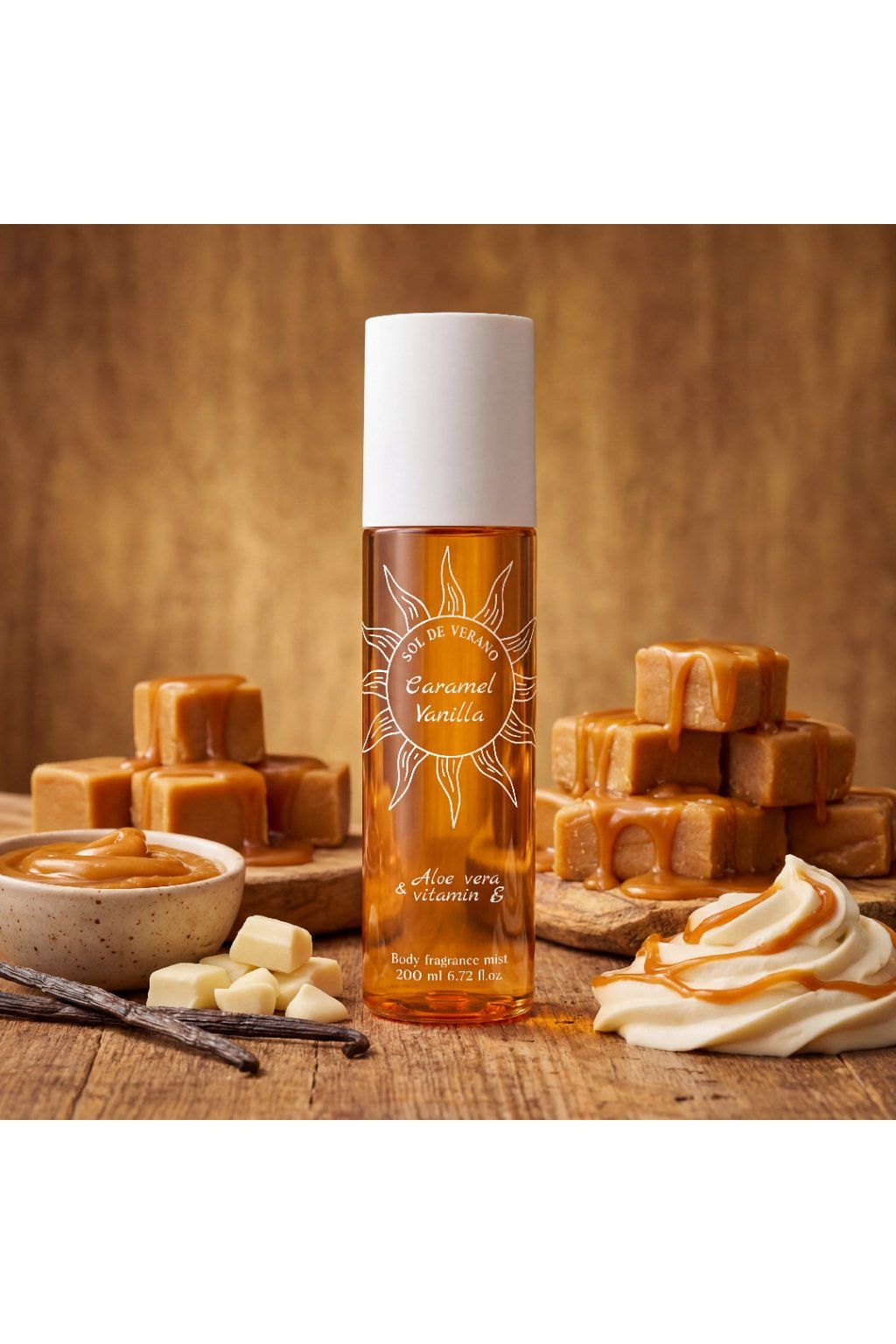 Sol de Verano Caramel Vanilla – Ponoř se do sladké euforie! Objev kouzelný svět plný sladkosti a hřejivosti s tělovou mlhou Sol de Verano Caramel Vanilla. Tato výjimečná kompozice tě přenese přímo na slunné pláže, kde je každý okamžik naplněný radostí a bezstarostností. Perfektní pro každou příležitost – od spontánních výletů s přáteli až po romantické večery.