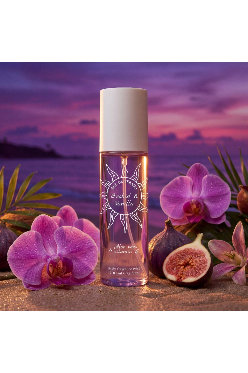 Naše tělová mlha Sol de Verano Orchid & Vanilla obsahuje vitamín E a aloe vera, které nejen dávají vůni jedinečný charakter, ale také pečují o vaši pokožku.